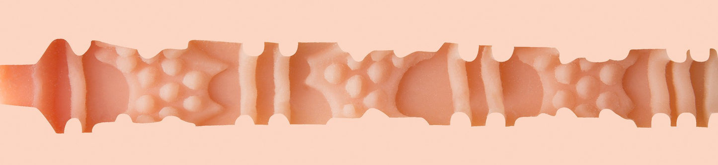 As you enter the sleeve, there are rows of tightly stacked rings that hug your flesh all the way around. A few inches into the sleeve, the opening bursts open into a canal with a series of curves and waves. For a realistic experience, use this Tight sleeve of Trenton Ducati's ass with the Fleshjack sleeve warmer. The sleeve warmer works with all of the Fleshjack sleeves, bringing them up to body temperature for an inviting performance. The Tight sleeve also comes in a delightfully sturdy powder blue case that measures 9.75 inches from the opening to the end.